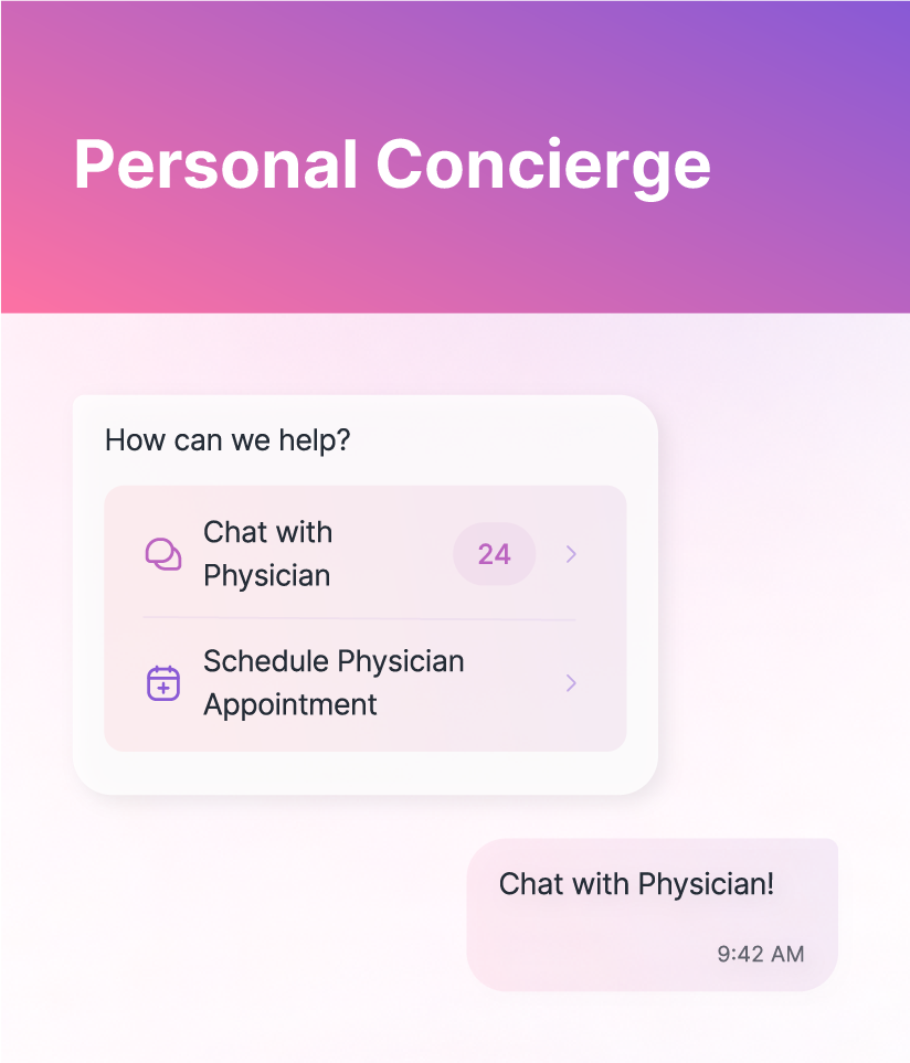 Your personal concierge is also available through the app. Send them a message to discuss your health, and they will respond during regular business hours.
